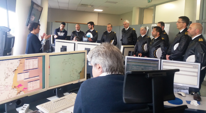 Foi também realizada uma visita às instalações do VTS - Centro de Controlo de Trafego Marítimo, em Paço de Arcos, onde foi realizada uma apresentação sobre a monitorização e acompanhamento efetuado através do Centro do Controlo do Tráfego Marítimo, onde a DGRM é a autoridade nacional para a rede europeia de partilha de informação relacionada com a segurança, proteção e vigilância marítima, através da Agência Europeia de Segurança Marítima.