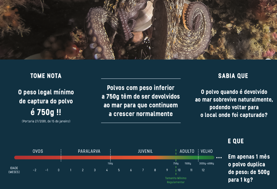 É sabido que o polvo é um animal muito inteligente e que vive entre 12 a 24 meses.
