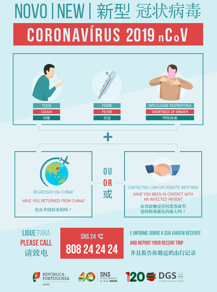 Divulga-se igualmente o cartaz da Direção-Geral de Saúde (DGS). Em caso de necessidade, ligar 808 24 24 24.