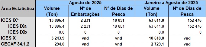 * Total da divisão IX pode não corresponder à soma das subdivisões IXa IXb por existirem capturas sem informação da subdivisão vnd - valor não disponível