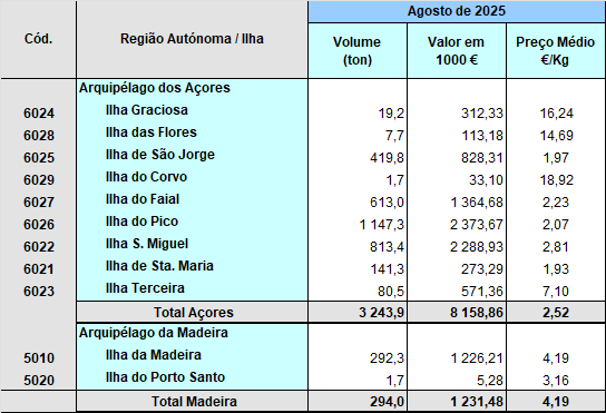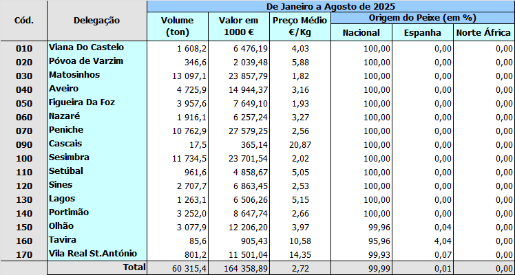 With this publication DGRM intends to make monthly fishing information available to all users. As it is information on a monthly basis, it will be limited to the national territory, that is, it will only be considered discharges in national ports and all information related to catches will be from fishing zones of the national EEZ.