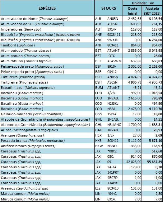 - Quotas de pescas Nacionais