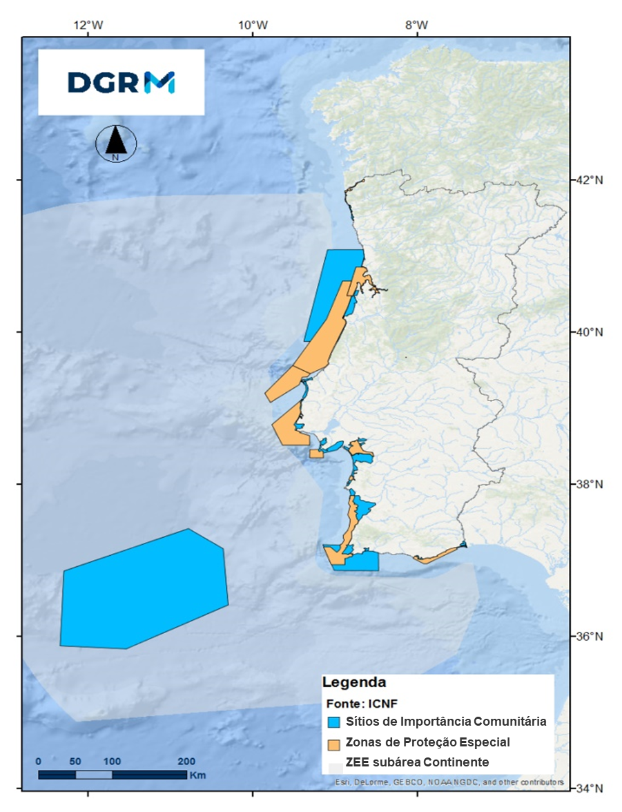 A Rede Natura 2000 abrange as áreas protegidas no âmbito da Diretiva Aves (Zonas de Proteção Especial) e da Diretiva Habitats (Sítios de Importância Comunitária e Zonas Especiais de Conservação). No Continente uma área considerável da plataforma continental já faz parte da Rede Natura 2000 assim como o maior monte submarino do espaço marítimo nacional: o Banco Gorringe. Também nas regiões autónomas estão classificadas um conjunto de áreas para proteção de cetáceos, aves marinhas e tartarugas e os habitats marinhos do Anexo I da Diretiva Habitats.