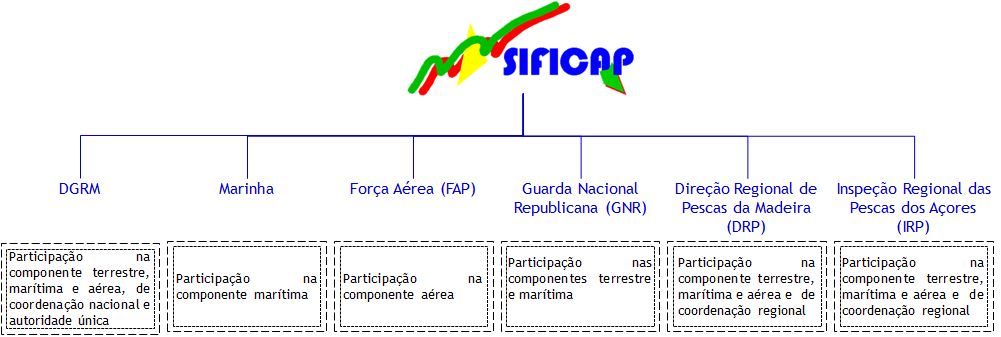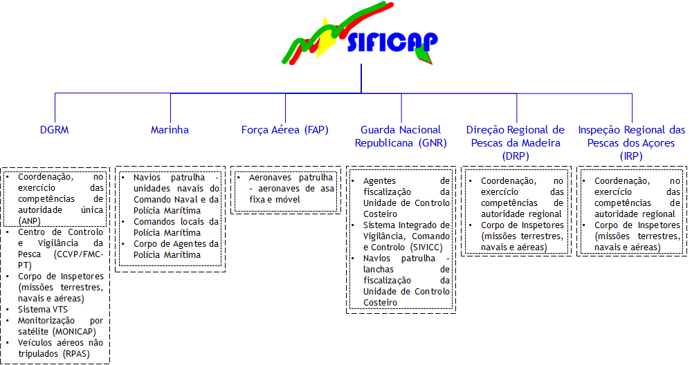 O SIFICAP suporta as ações de vigilância, fiscalização e controlo das atividades da pesca a nível nacional, definindo as entidades competentes e participantes no sistema: no SIFICAP: